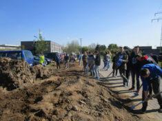 Vorwiegend mit Schülerinnen und Schülern der IGS sowie der Hainwaldschule und vielen ehrenamtlichen Helferinnen und Helfern entstand dieser Blühstreifen, der vielen Tieren Nahrung und Brutplatz bietet.